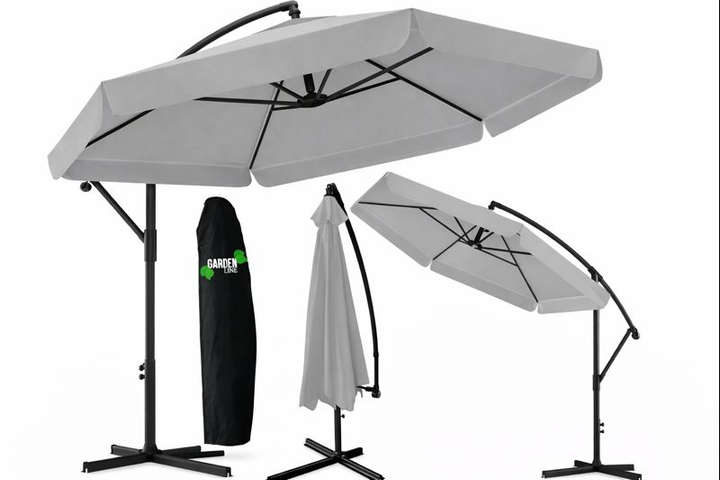 Садова парасоля Garden Line GAO5316 BANANA 300 см сіра з боковою стійкою та чохлом