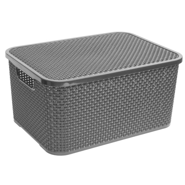 Ящик для зберігання BranQ Rattan з кришкою 19 л антрацит (1724.1)
