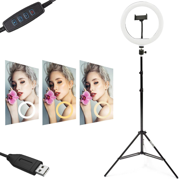 Кільцева лампа LED Ring Fill Light 30 см 12" із тримачем для смартфона USB 3 режиму, з пультом