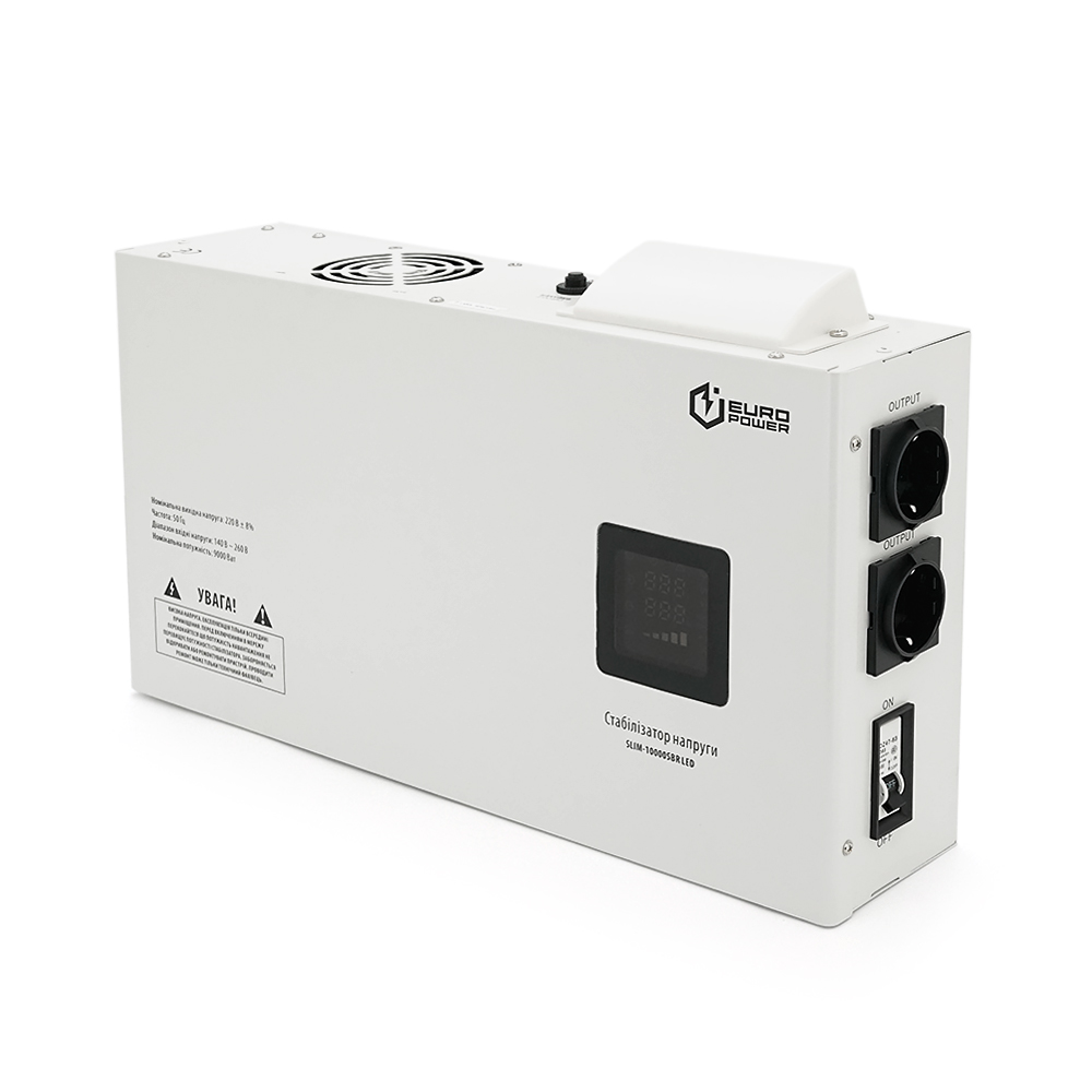 Стабілізатор напруги релейний настінного монтажу Europower SLIM-10000SBR LED, 10KVA 9000W, 140-270Vac, 2SHUKO, Q1 (515*270*2