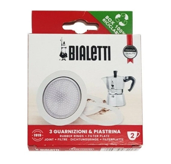 Набір Bialetti 2 cup Moka Express, ущільнювач + фільтр для гейзерної кавоварки (E80255412FB7)