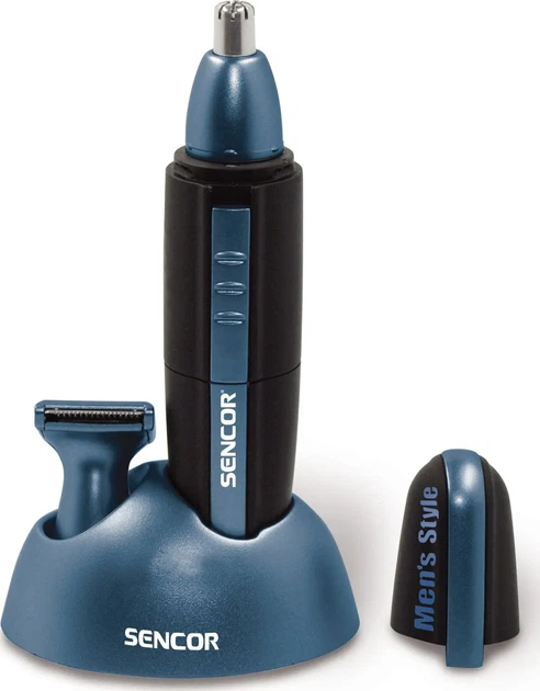Тример Sencor, для бороди, вусів, носа та тіла, ААx1, насадок-2, підставка, сталь, чорно-синій