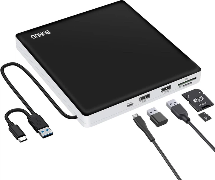 Зовнішній CD/DVD-привід BUNUD USB 3.0 та Type-C з 2 USB і SD/TF для ноутбуків Windows/Mac