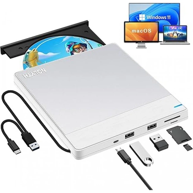 Зовнішній CD/DVD-привід QDSYLQ для ноутбука USB 3.0 та Type-C