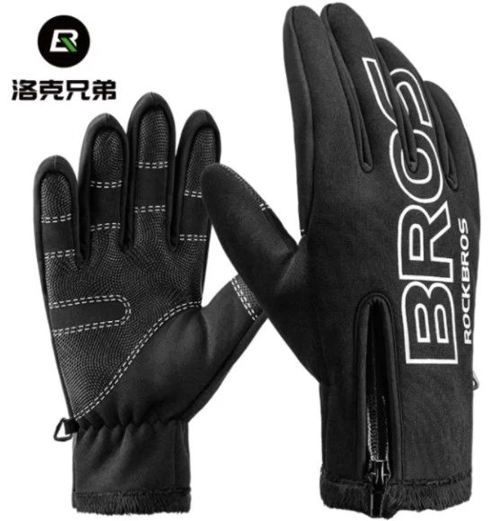 Зимові лижні гірськолижні,вело,спортивні рукавички з хутром ROCKBROS S091-4 сенсорні непродувні L Чорні