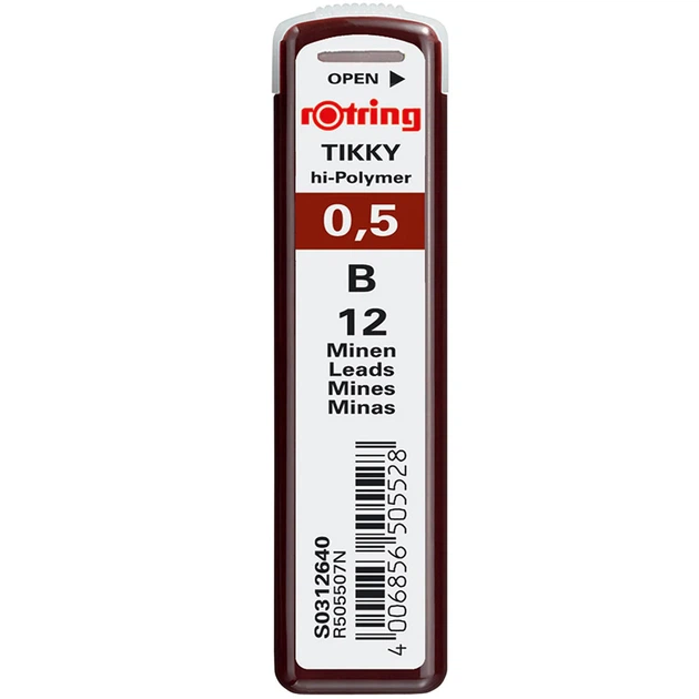 Грифелі Rotring Tikky 0.5 мм 12 штук B чорні (S0312640)