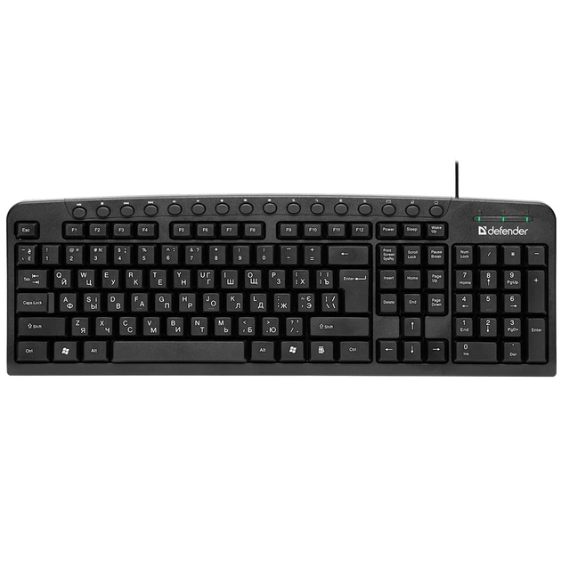 Дротова мембранна клавіатура Defender з USB, повнорозмірна, плоский корпус, чорна, 436x144x15 мм