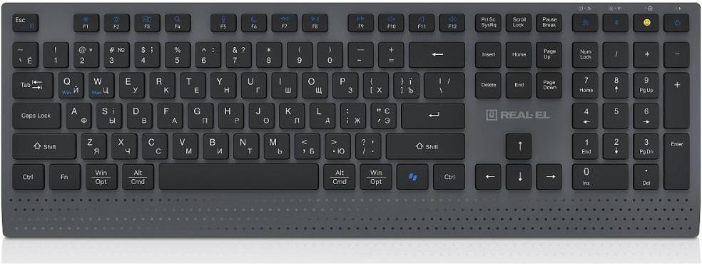 Клавіатура бездротова REAL-EL RK-715W, Black/Grey, EN/UA, Bluetooth/2.4GHz/USB, мембранні клавіші (109 шт), радіус дії до 10