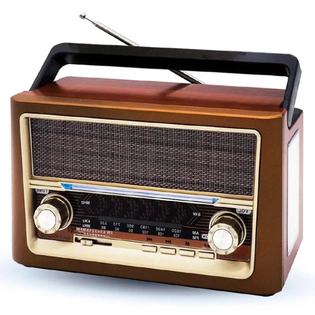 Акумуляторний радіоприймач GOLON FM/AM/SW/AUX із МР3 плеєром, переносне, настільне радіо Коричневий (6699)