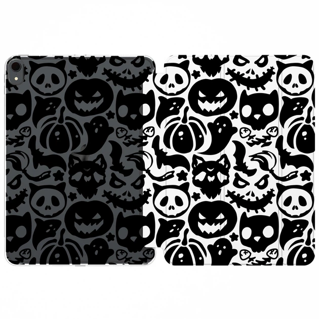 Чохол книжка, обкладинка для планшета Apple iPad Pro 12.9 2020-2022 (Котячий череп, жах, гарбуз, чорна, страшна, кажани) епл
