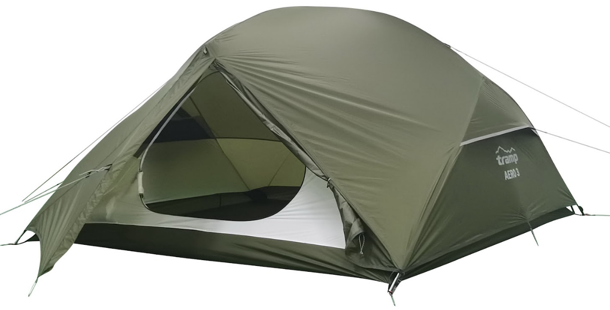Ультралегкий тримісний намет Tramp Aero 3 UTRT-003-olive — ідеальний баланс місткості та мінімальної ваги (1,95 кг). Завдяки хабовій алюмінієвій конструкції та силіконізованому нейлону RipStop (3000 мм), намет забезпечує надійний захист від негоди та стабільність. Модель має два входи, два тамбури та чудову вентиляцію, що робить її найкращим вибором для групових походів у стилі "light & fast".