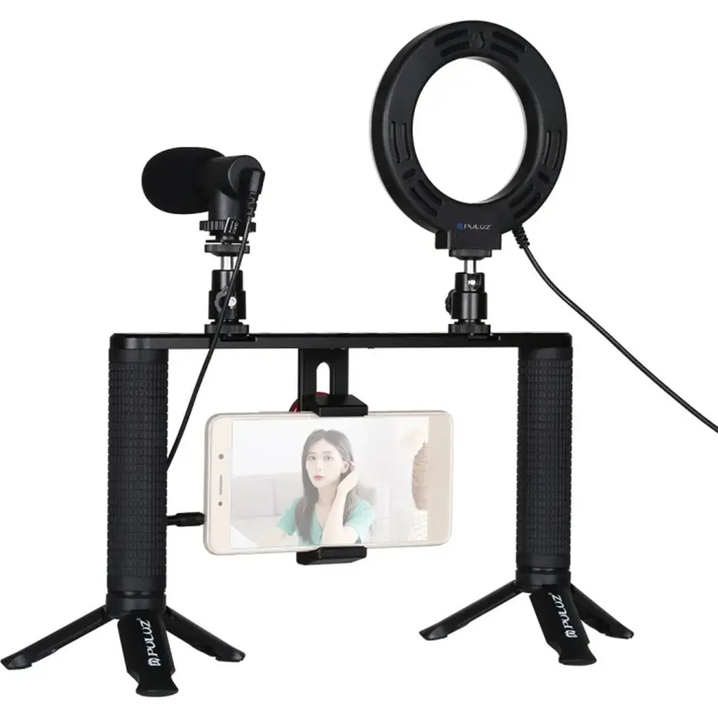Комплект блогера Puluz PKT3028 4в1 (кільцеве світло, кріплення, тримач для телефону, мікрофон)