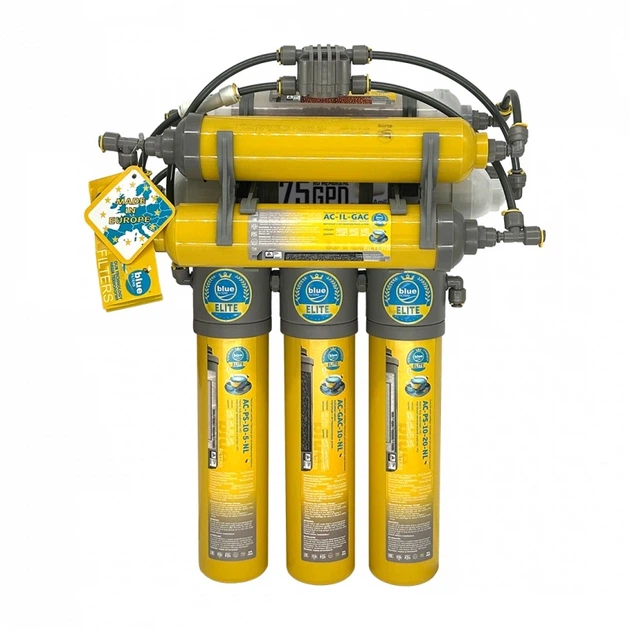 Фільтри фірми Bluefilters обладнуються зворотним осмосом (це вже стандарт у виробників), функціями мінералізації та ультрафіолетової очищення води. При зворотному осмосі очищення відбувається на молекулярному рівні. Молекули води проходять через мембрану і на виході — тільки чиста вода, а домішки, як-от хлор, важкі метали і пестициди залишаються по іншу сторону. Якщо мембрану регулярно очищати, ресурс збільшиться в кілька разів. Жоден фільтрувальний елемент не прослужить вам так довго і ефективно, як мембрана в фільтрі Bluefilters, завдяки технології Bluefilters New Line.