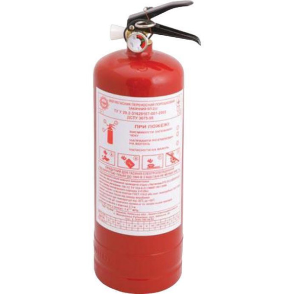 Вогнегасний порошковий закачного типу ОП-2 є першочерговим засобом пожежогасіння, призначений для гасіння займань тліючих матеріалів, легкозаймистих рідин, електро- та газоустановок, які знаходяться під напругою не більше 1000 В на транспортних засобах, в адміністративних та житлових будівлях, на промислових підприємствах, а також на складах зберігання матеріалів.. Виготовлення згідно ТУ У29.2-31629167-001-2003. Характеристики: - Індикатор для візуального контролю тиску - Клас гасіння А,Б, Е - Повна маса не більше 3,3 кг. - Маса порошкового складу, кг: 3,0 +/-0,05 - Висота не більше 380 мм. - Колір червоний - Тривалість подачі вогнегасної речовини 5 сек. - Мінімальна довжина напору вогнегасної речовини не менше 2 метрів. - Період експлуатації 12 місяців. - Температура експлуатації: від -40 до +50 С.