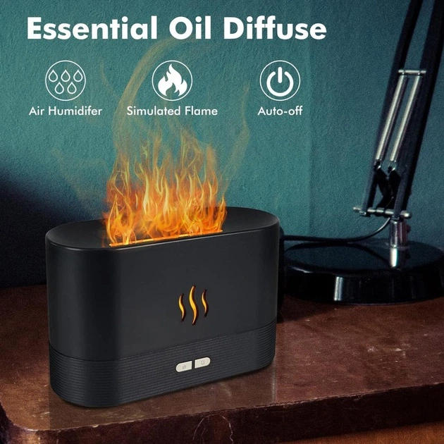 Нічник зволожувач повітря з імітацією полум'я та резервуаром для ефірної олії аромадифузор 180 мл