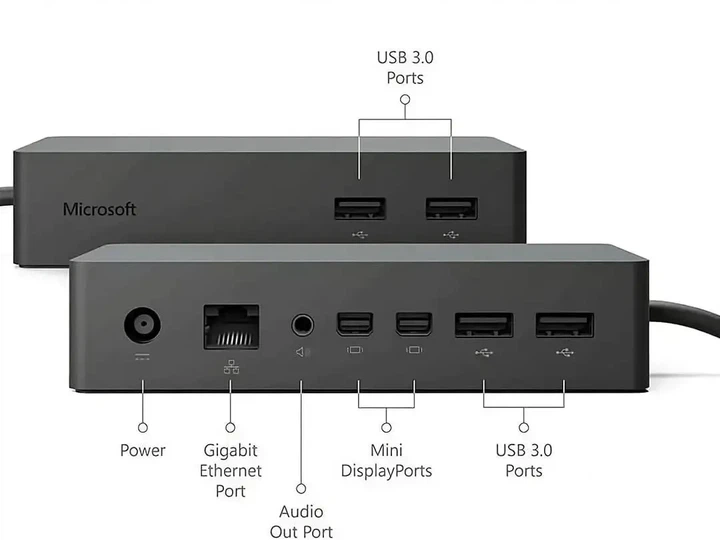 Артикул: PD9-00003 Порти: Mini DisplayPort х 2, Gigabit Ethernet Port, USB 3.0 х 2, 3.5 mm, Surface Connect, додатковий блок живлення 90Вт Сумісність: Surface Pro 7+/8/X, Laptop 4, Laptop Studio, Laptop Go 2/3 Вага: 550 г