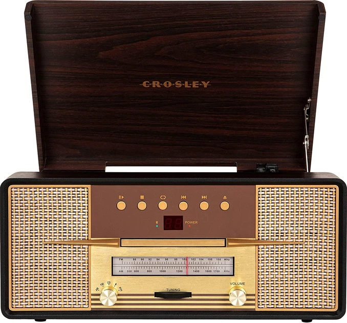 Програвач вінілових дисків Crosley Stave Walnut Crosley Stave Walnut — це стильне поєднання ретро-естетики та сучасних аудіотехнологій. Завдяки верхньому корпусу з оформленням під горіх (walnut) з золотистими акцентами він легко стане центральним елементом інтер’єру — від вітальні до творчої студії. У той же час пристрій не просто красива оболонка: він спроектований так, щоб задовольнити й