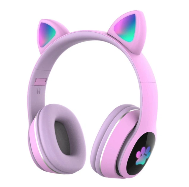 Бездротові дитячі MP3 Навушники з Вушками з підсвіткою з MicroSD Ear STN-25 Bluetooth Рожеві
