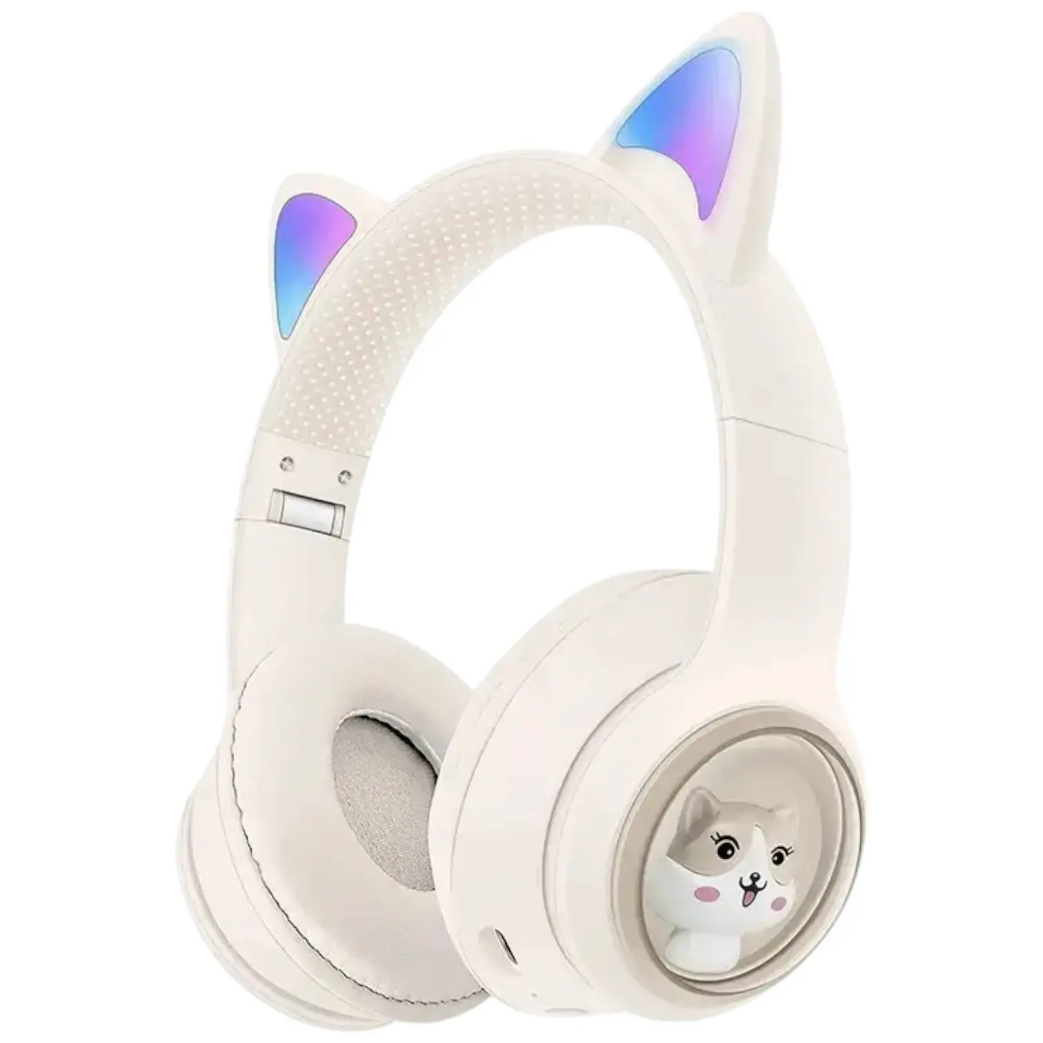 Дитячі бездротові Bluetooth навушники AZK-01 з RGB підсвічуванням і вбудованим мікрофоном Бежевий