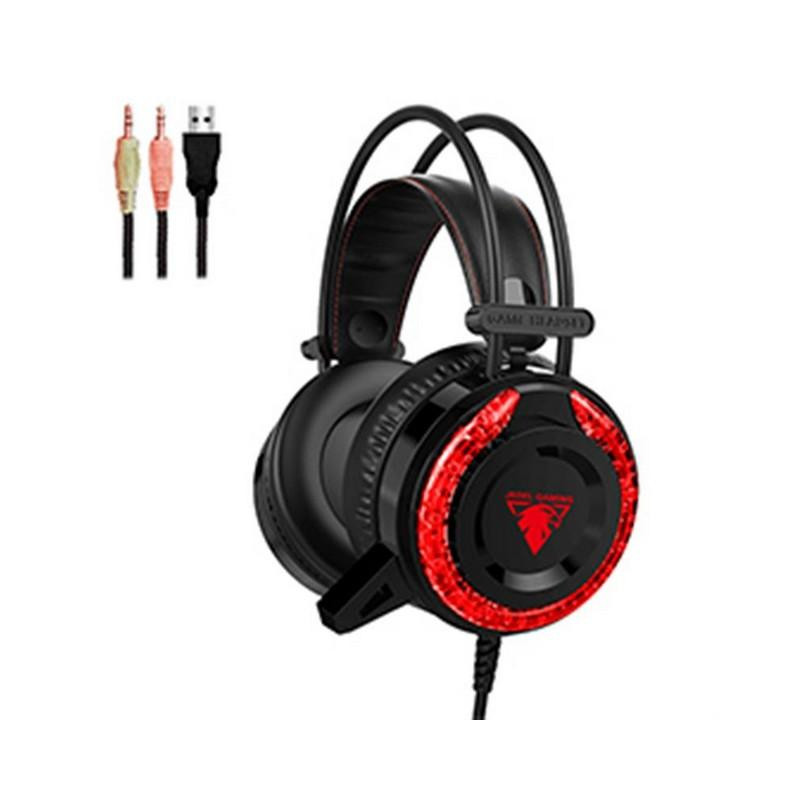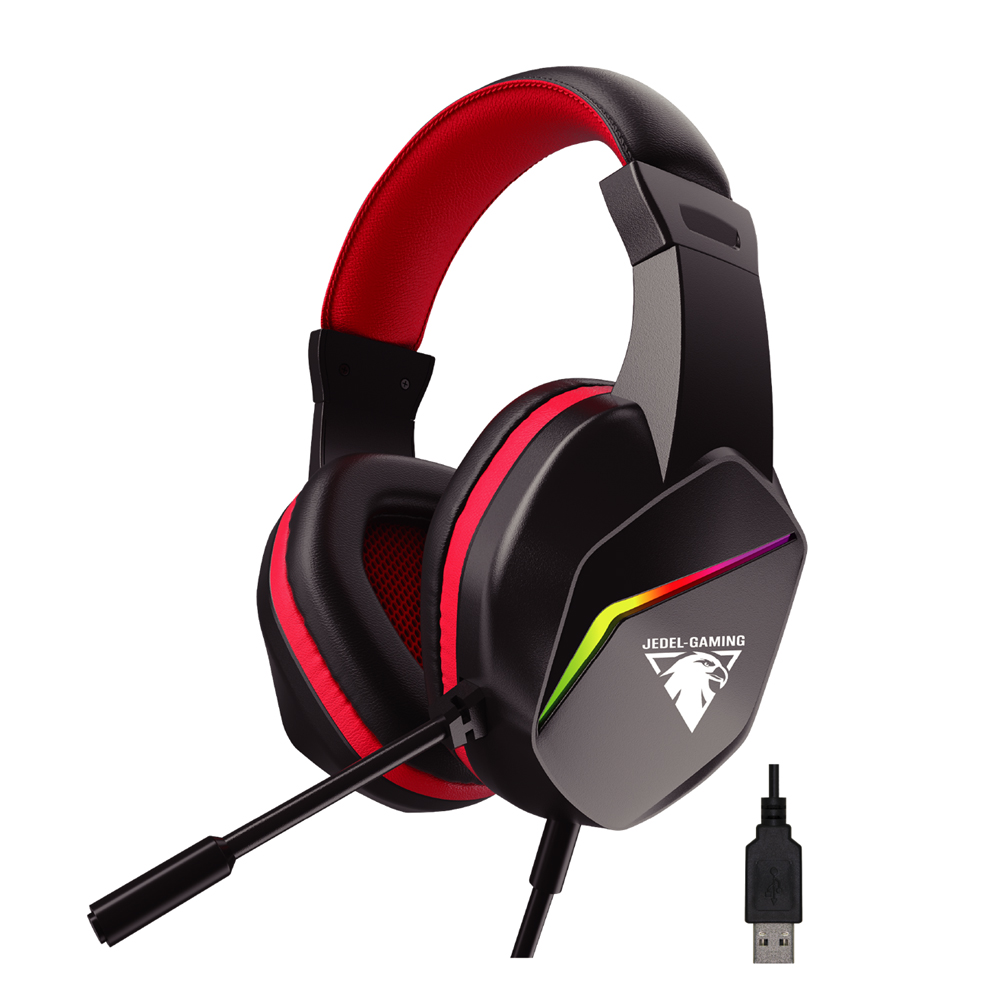 Навушники провідні з підсвічуванням Jedel GH-269, з мікрофоном і регулюванням гучності, Black / Red, Box