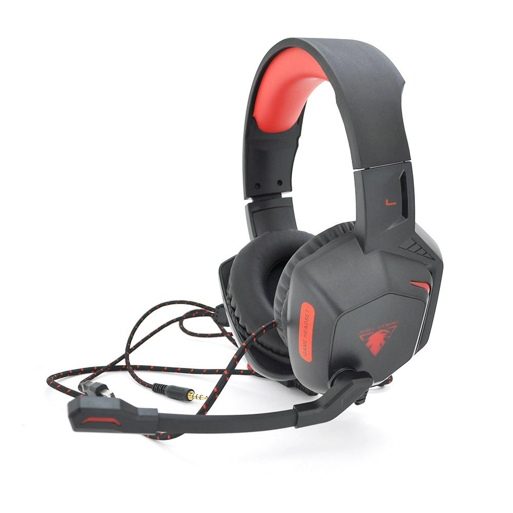 Навушники провідні з підсвічуванням Jedel GH-233, з мікрофоном та регулюванням гучності, Black / Red, Box