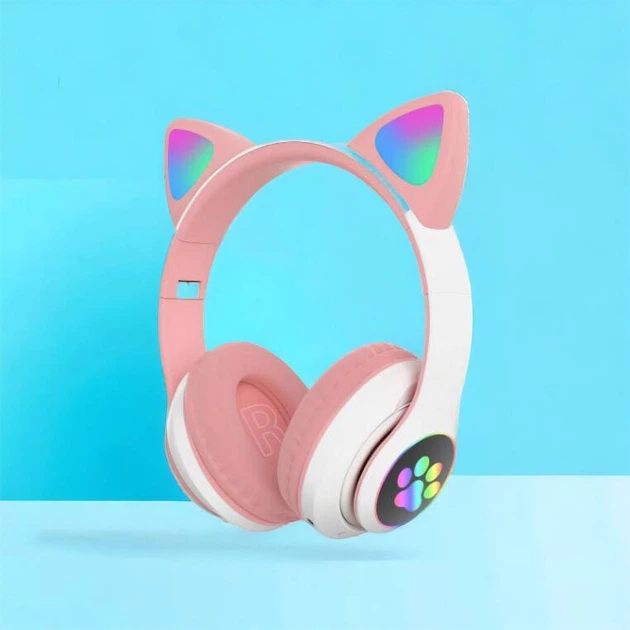 Бездротові навушники з котячими вушками Cat STN-28 з Bluetooth LED підсвічуванням функція MP3 Pink