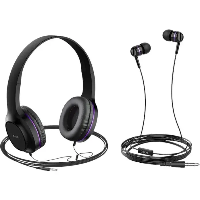 Пара навушників Hoco Enlighten W24 накладні та вставні чорні з фіолетовим