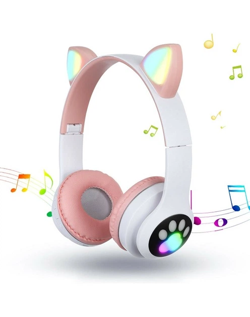 Навушники бездротові Cat Ear VZV-24M Bluetooth з різнобарвною LED-підсвіткою і котячими вушками Рожеві