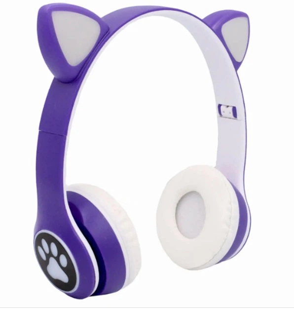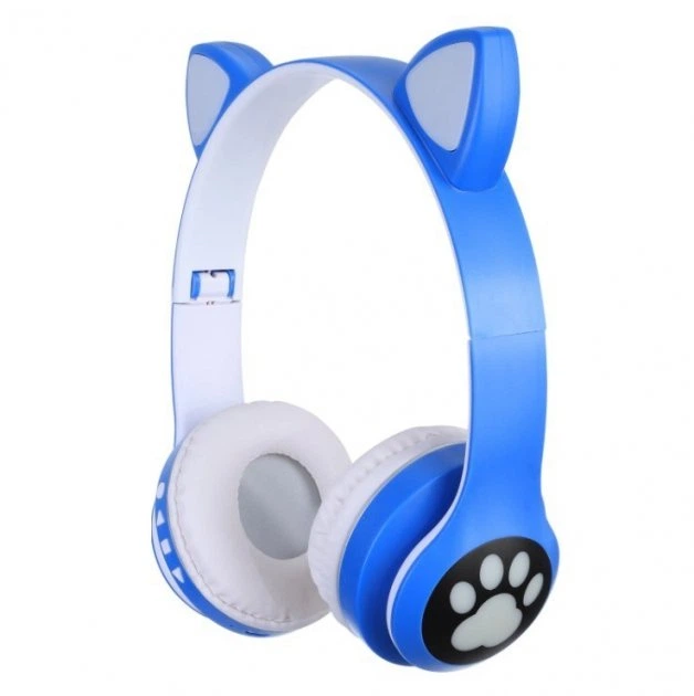 Навушники бездротові блютуз із підсвіткою котики блакитні