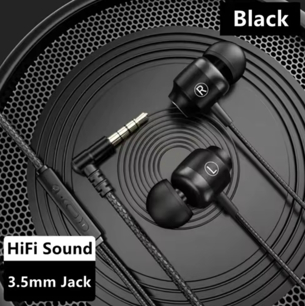 Навушники дротові вакуумні з шумозаглушенням, підключення 3.5 мм. Чорний
