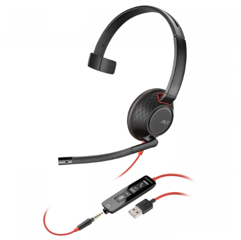 Дротова гарнітура з шумоподавленням і регулятором гучності, USB-A і 3.5 мм, чорно-червона