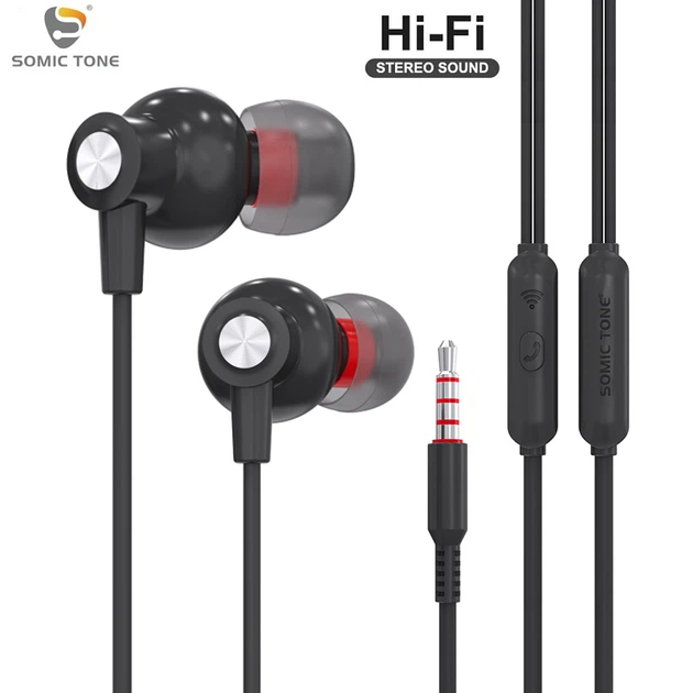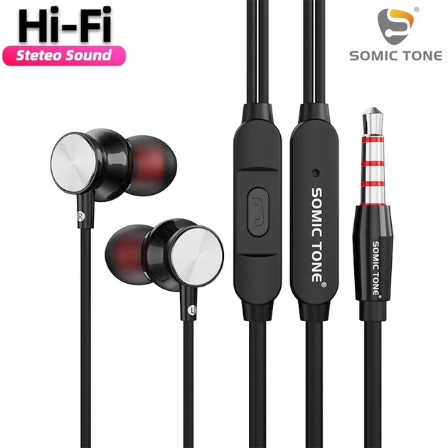 Дротові Вакуумні Навушники з Мікрофоном 3.5mm jack (1.2м) Стерео Гарнітура Для Смартфону Ноутбука SomicTone S-603 Extra Bass