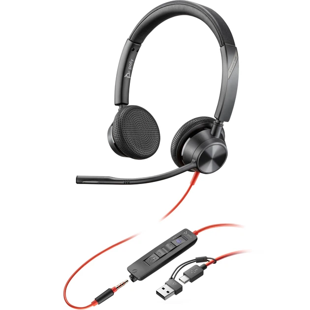 Дротова гарнітура з шумозаглушенням та висувним мікрофоном, USB-C/A адаптер, чорний