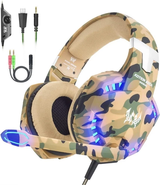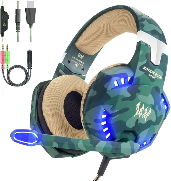 Ігрова гарнітура VersionTECH. з мікрофоном, регульовафним оголів’ям, 3,5-мм роз’ємом для басів OverEar, світлодіодним підсві