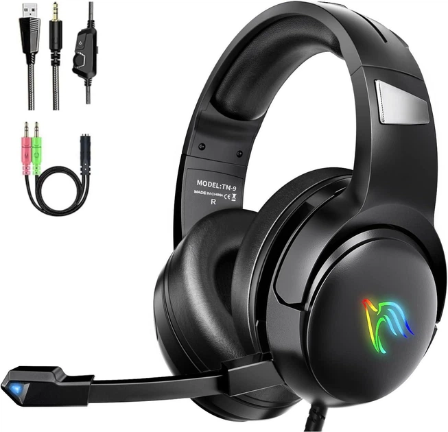 Ігрова гарнітура YINSAN із мікрофоном із шумопоглинанням, RGB-підсвічуванням та функцією відключення звуку, з об'ємним звуко
