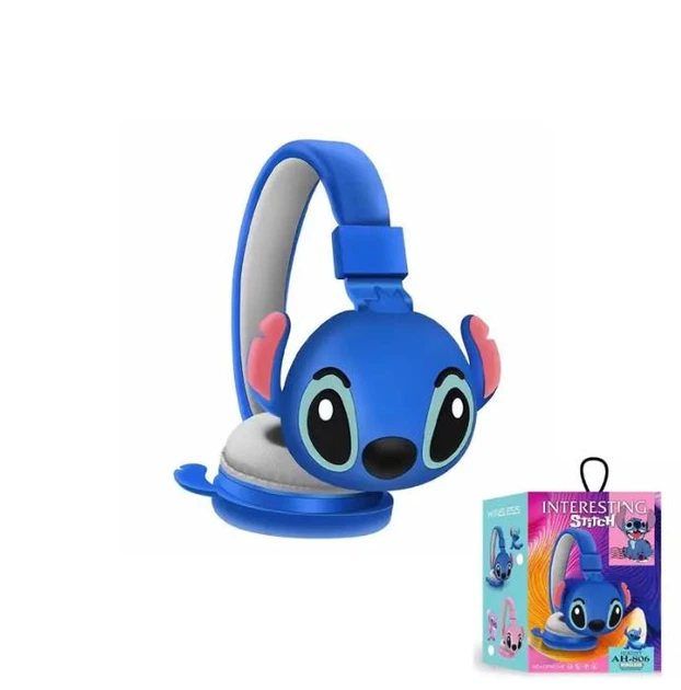 Дитячі бездротові блютуз Bluetooth навушники для хлопчика і дівчинки з персонажем Стіч, зі Стічем з вушками, сині Stitch