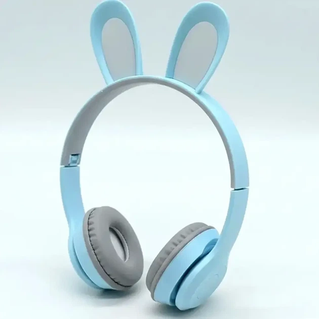 Дитячі бездротові навушники Bluetooth з вушками зайчика RGB Picun B12 4704/4705 VJ USB Type-C, з підсвіткою, бірюзові