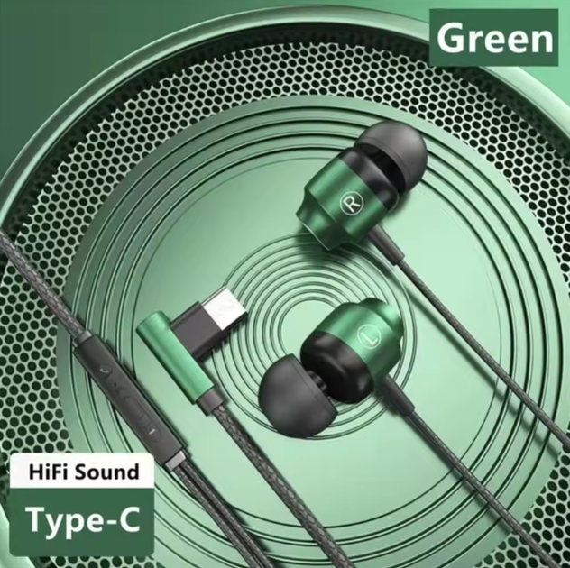 Провідні вакуумні стерео навушники Type-C з кутовим роз'ємом та мікрофоном для телефону, смартфона, ПК YU77-TG