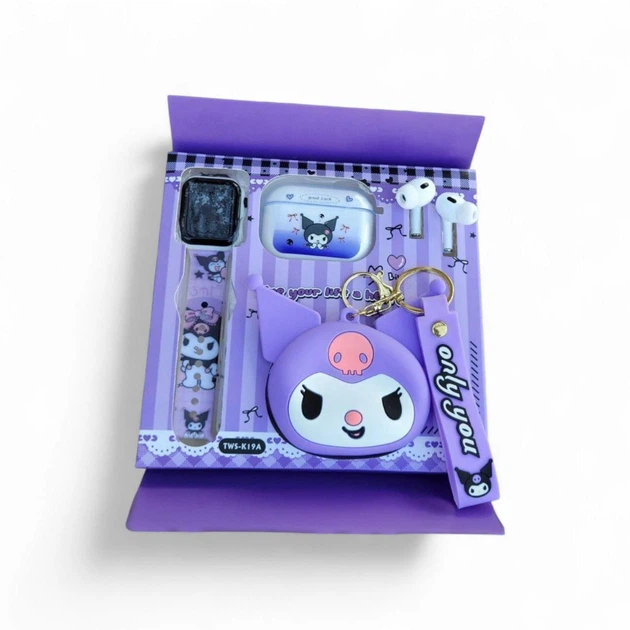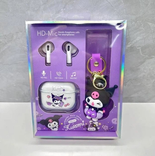 Дитячий подарунковий набір дівчинці з Куромі 4 в 1 бездротові bluetooth навушники, кейс для зарядки Курумі, брелок сумочка K