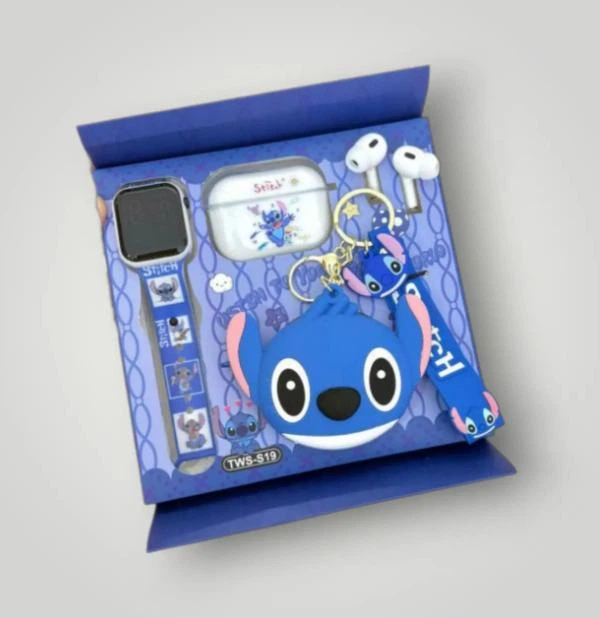 Дитячий подарунковий набір зі Стічем синім 4 в 1 бездротові Bluetooth навушники гарнітура для хлопчика та дівчинки TWS Стіч