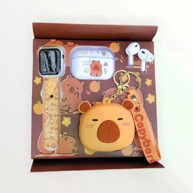 Дитячий подарунковий набір Capybara 4 в 1 для хлопчика та дівчинки, бездротові блютуз Bluetooth навушники Копібара, кейс для