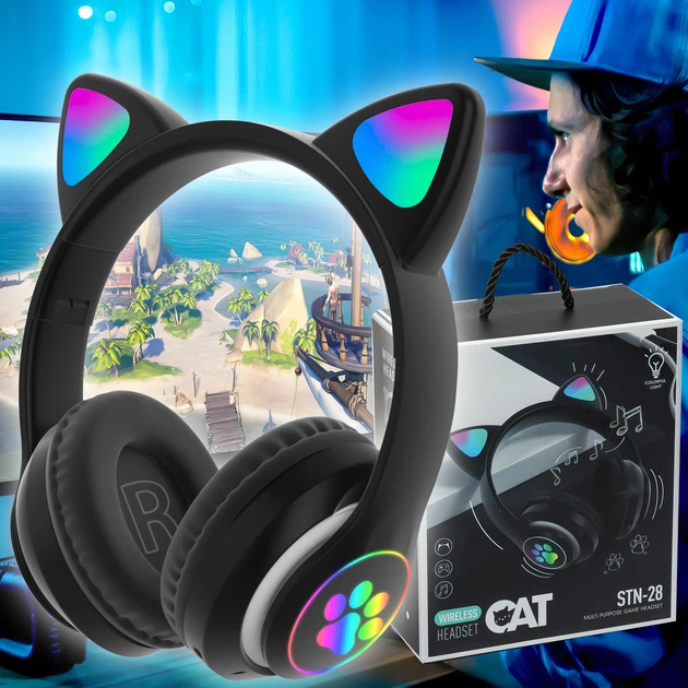 Бездротові портативні bluetooth TWS навушники з котячими вушками Cat STN-28 Чорні