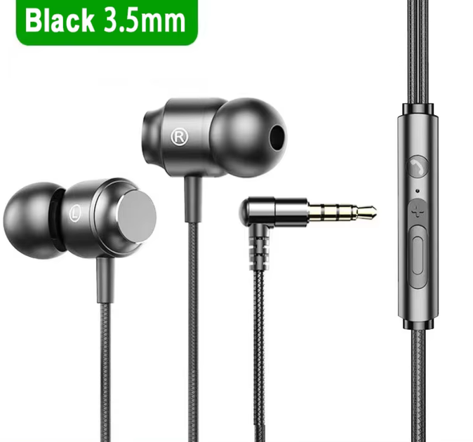 Провідні вакуумні стерео навушники 3.5 мм (mini-Jack) з кутовим роз'ємом та мікрофоном для телефону YU77-JB