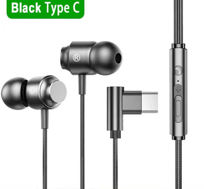 Провідні вакуумні стерео навушники Type-C з кутовим роз'ємом та мікрофоном для телефону, смартфона, ПК YU77-TB