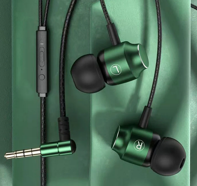 Провідні вакуумні стерео навушники 3.5 мм (mini-Jack) з кутовим роз'ємом та мікрофоном для телефону YU77-JG