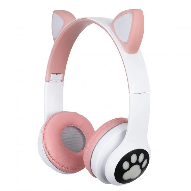 Навушники бездротові Bluetooth Y47 з котячими вушками та LED підсвічуванням рожеві