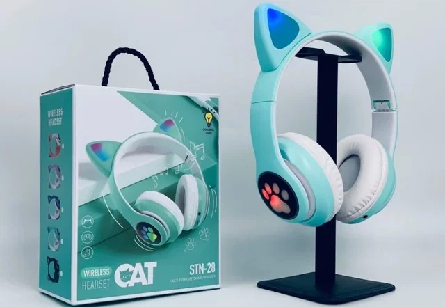 Навушники, що світяться для дітей STN28 котячі вушка, Bluetooth дитячі навушники.Зелений