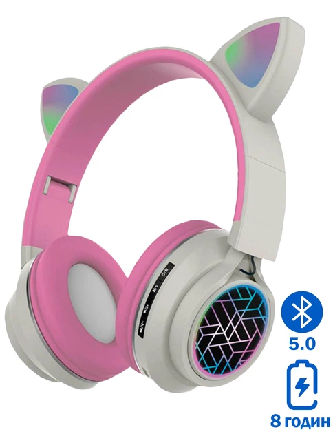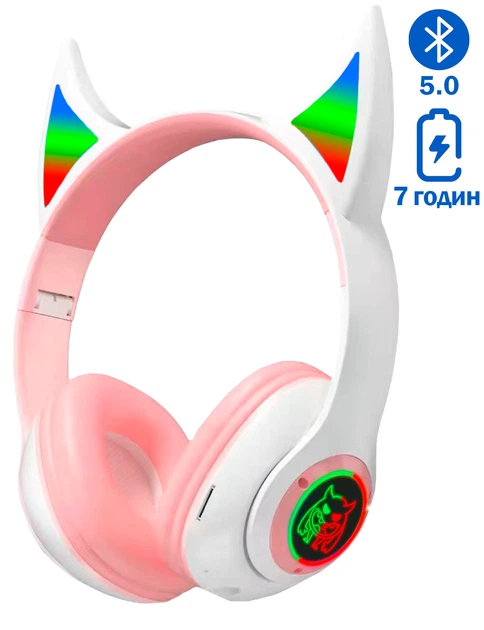 Бездротові навушники Borofone з вушками з мікрофоном Cat Ear з LED RGB підсвіткою вушка кішки Bluetooth блютуз складні, Білі