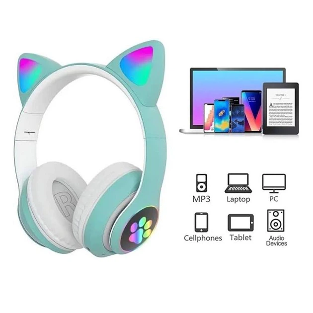 Бездротові LEd навушники з котячими вушками Bluetooth Cat бирюзові