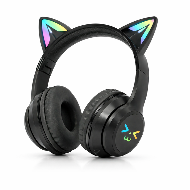 Дитячі бездротові навушники CATEAR BT618 з вушками та RGB-підсвіткою Bluetooth 5.3 MicroSD AUX чорні